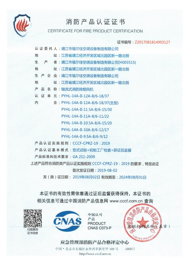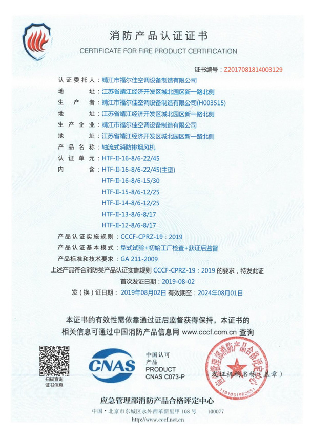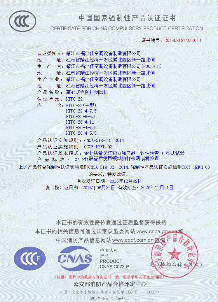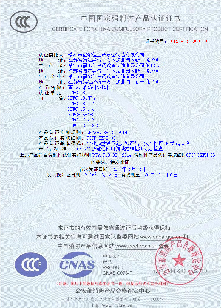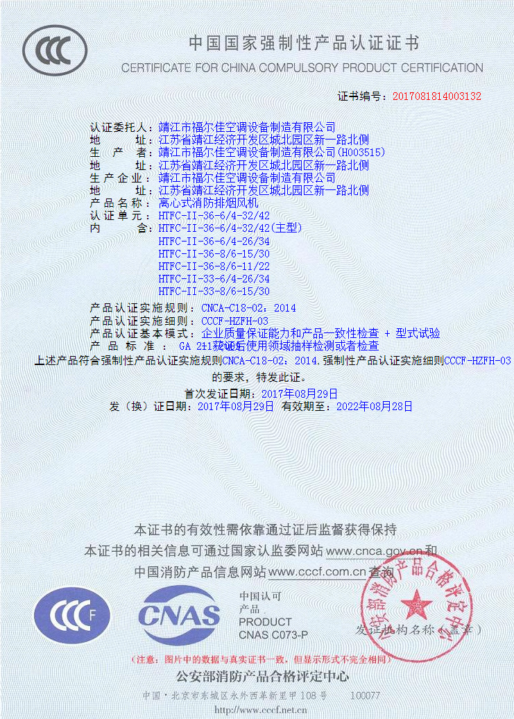我厂主要产品:3C风机,3C防火阀,消防高温排烟风机,消防柜式离心风机,混流风机,斜流风机,玻璃钢屋顶风机,隧道射流风机,风机箱,挡烟垂壁,防火卷帘,各种风口、散流器、消声器、调节阀、防火阀、排烟防火阀等系列空调末端产品。