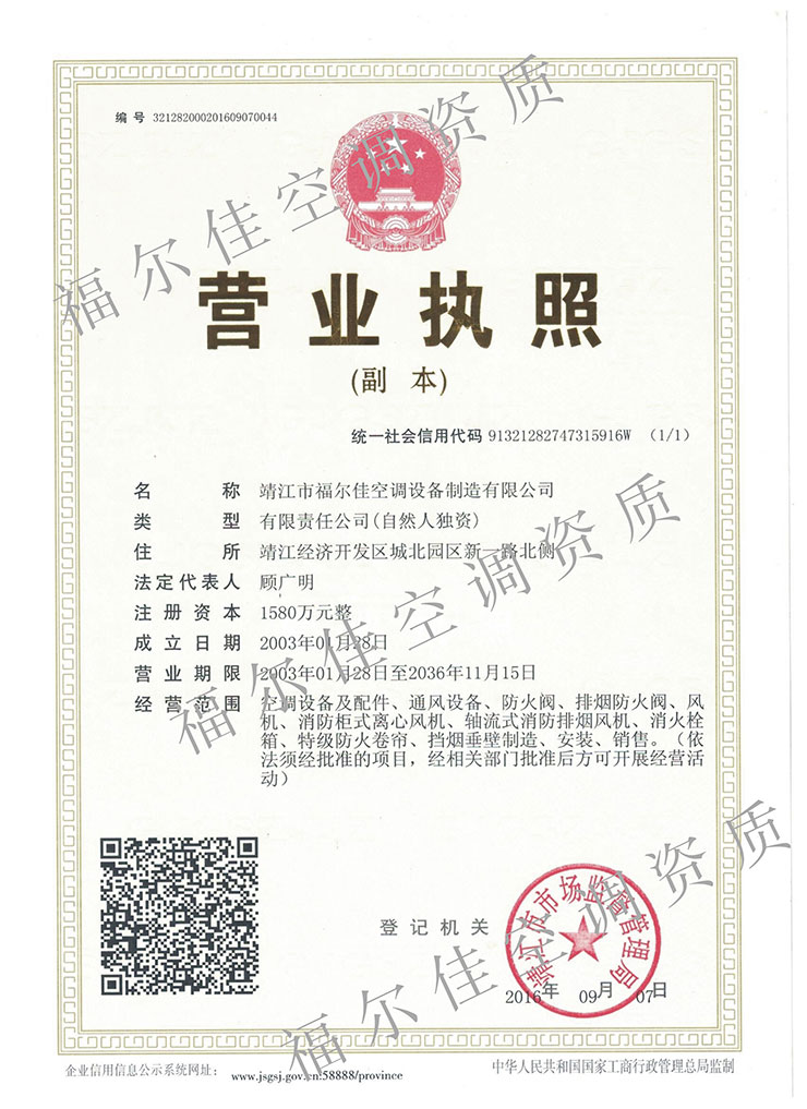 靖江市福尔佳空调设备制造有限公司位于长江三角洲江苏省沿江开发地段,上海浦东开发区的辐射带,水陆交通十分便捷,建厂十多年来,不断开发新品、不断增加投入、不断推陈出新,发展至今已具有一定的规模,厂内技术力量雄厚、生产加工设备齐全,检测手段完善、产品质量精良。
